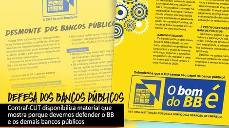 A Confederação Nacional dos Trabalhadores do Ramo Financeiro (Contraf-CUT), assessorada pela Comissão de Empresa dos Funcionários do Banco do Brasil (CEBB), disponibilizou nesta terça-feira (1º/12) um boletim em defesa do BB e dos demais bancos públicos.