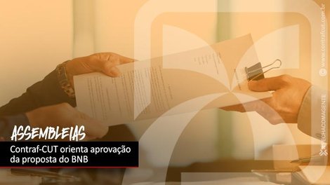 A Confederação Nacional dos Trabalhadores do Ramo Financeiro (Contraf-CUT) e a Comissão Nacional dos Funcionários do BNB orientam as assembleias das bases com unidades do Banco do Nordeste do Brasil a aprovarem a proposta de acordo de dois anos apresentada na tarde desta sexta-feira (28) pela direção do banco às entidades sindicais, que mantém os direitos e atendem as reivindicações dos funcionários.