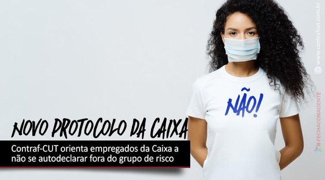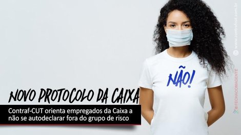 A Confederação Nacional dos Trabalhadores do Ramo Financeiro, por intermédio da Comissão Executiva dos Empregados (CEE), orienta os empregados da Caixa Econômica Federal a não assinalar a informação de que “NÃO” é grupo de risco na autodeclaração de Saúde – Covid-19. No novo protocolo anunciado pela Caixa, na segunda-feira (18), foi inserida essa opção.