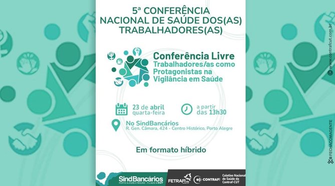 No coração do Abril Verde, mês dedicado à conscientização sobre saúde e segurança no trabalho, a Confederação Nacional dos Trabalhadores do Ramo Financeiro (Contraf-CUT) assume o protagonismo na defesa do bem-estar da categoria e promove nesta quarta-feira, 23 de abril, a Conferência Livre “Trabalhadores e Trabalhadoras como Protagonistas na Vigilância em Saúde”.