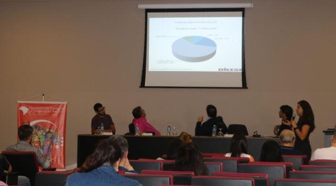A socióloga Bárbara Vallejos e o economista Gustavo Machado Cavarzan, ambos do Departamento Intersindical de Estatística e Estudos Socioeconômicos (Dieese), apresentaram informações detalhadas sobre cada um dos setores que compõem o macrossetor (comércio, comunicação, financeiro, processamento de dados e vigilantes).