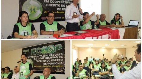 O 7º Encontro de Cooperativários (Ecoop) de Rondônia, realizado pelo Sindicato dos Bancários neste sábado 6 de maio em Ji-Paraná, debateu a conjuntura política e econômica do país e aprovou a pauta de reivindicações para o período 2017/2019, que tem como principais eixos a reposição da inflação mais 5% de aumento real nos salários, auxílio-tíquete no valor de um salário mínimo (R$ 937,00), vale-cultura, proibição de transporte de numerário pelo trabalhador e participação das sobras. O acordo dos cooperativários de Rondônia tem validade por dois anos.
