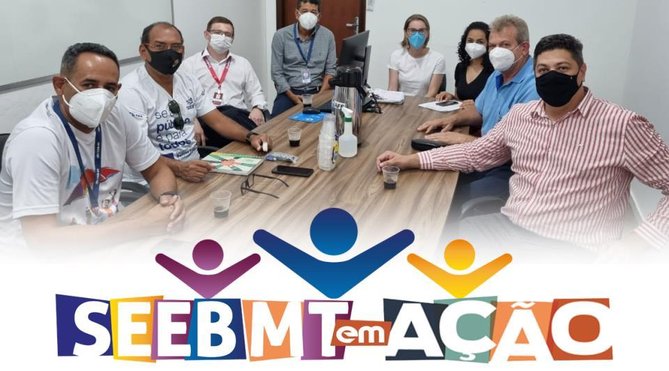 A direção do Seeb/MT foi recebida pelas coordenadoras de vigilância em Saúde e de Imunização, as enfermeiras Taynna Vacaro e Kátia Dal Prá, respectivamente. Participaram da reunião representantes dos Bancos: do Brasil, Bradesco, Santander e Caixa.