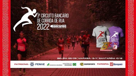 O 3º Circuito Bancário de Corrida de Rua tem o patrocínio da Fenae/Apcef-PA, do Banco da Amazônia/Ministério da Economia e da Cooperforte e conta com a parceria do Banpará