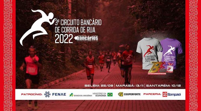 Vai começar o 3º Circuito Bancário de Corrida de Rua. A primeira etapa já será no próximo domingo 25/09, com a 16ª Corrida e Caminhada Bancária de Belém. A largada será às 6h, no Parque Ecológico do Utinga. Mas antes disso, os participantes receberão seus kits para a prova, na sede do Sindicato. As entregas de kits ocorrem na sexta 23/09, de 10h até 18h; e no sábado 24/09, de 09h até 13h.