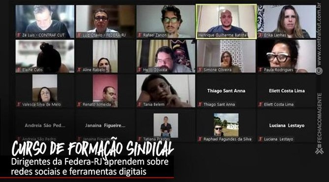 O curso de Formação da Confederação Nacional dos Trabalhadores do Ramos Financeiro (Contraf-CUT) teve mais uma etapa na noite de terça-feira (01). Dezenas de dirigentes da Federação das Trabalhadoras e dos Trabalhadores do Ramo Financeiro do Estado do Rio de Janeiro (Federa-RJ) assistiram a uma aula sobre redes sociais e demais ferramentas de luta, de forma online. “O nosso programa de formação tem atividades presenciais e digitais, em busca de abranger a sistematização do conhecimento nas diversas estratégias e ferramentas de luta de importância para a classe trabalhadora”, afirmou Rafael Zanon, secretário de Formação da Contraf-CUT.