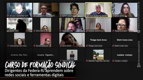 O curso de Formação da Confederação Nacional dos Trabalhadores do Ramos Financeiro (Contraf-CUT) teve mais uma etapa na noite de terça-feira (01). Dezenas de dirigentes da Federação das Trabalhadoras e dos Trabalhadores do Ramo Financeiro do Estado do Rio de Janeiro (Federa-RJ) assistiram a uma aula sobre redes sociais e demais ferramentas de luta, de forma online. “O nosso programa de formação tem atividades presenciais e digitais, em busca de abranger a sistematização do conhecimento nas diversas estratégias e ferramentas de luta de importância para a classe trabalhadora”, afirmou Rafael Zanon, secretário de Formação da Contraf-CUT.