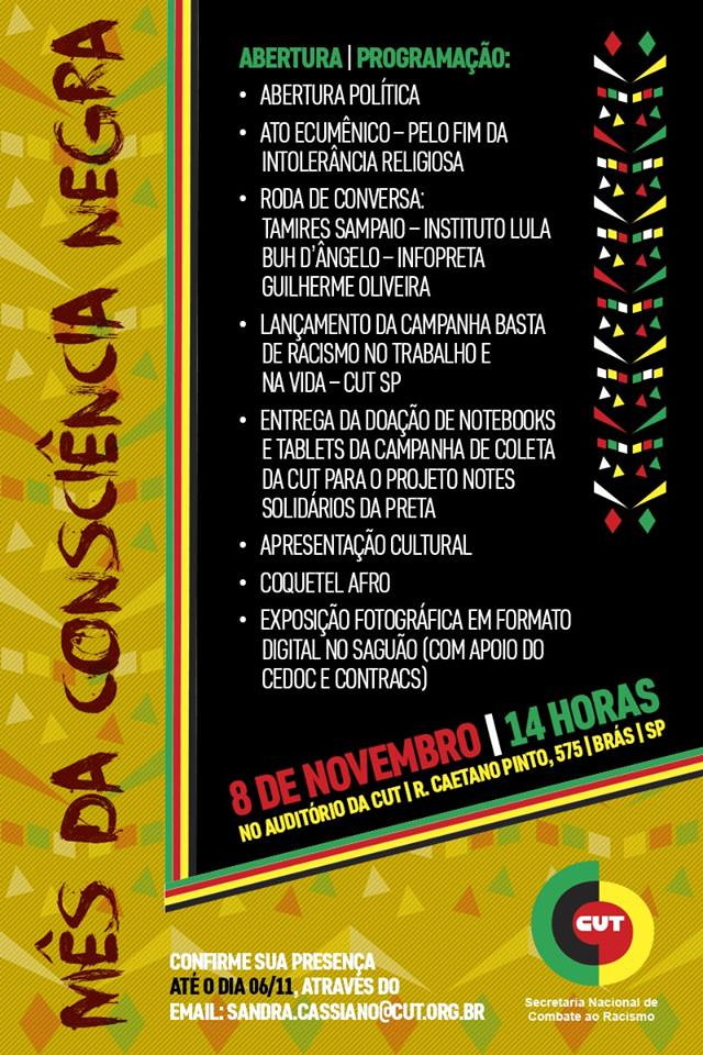 O evento é organizado pelas secretarias Nacional de Combate ao Racismo e de Cultura da CUT.