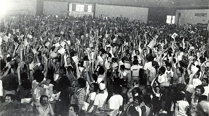 O surgimento da CUT em 28 de agosto de 1983, em São Bernardo do Campo, na região do ABC paulista, se deu em meio a um regime ditatorial, prestes a completar duas décadas, e a uma grave crise econômica, traduzida em arrocho e desemprego. Nesta terça-feira (28), quando completa 35 anos, a central enfrenta outros desafios, alguns bem parecidos: contra um Estado de exceção, contestando um golpe que destituiu uma presidenta eleita legitimamente, e que não cometeu crime, e reivindicando eleições democráticas em 7 de outubro, com a garantia da presença do ex-presidente Luiz Inácio Lula da Silva como candidato.