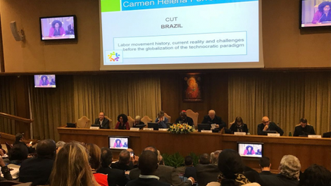 Em discurso no Encontro Internacional de Organizações Sindicais, na sala Novo do Sínodo, na Cidade do Vaticano, a vice-presidenta da CUT Nacional, Carmen Foro, falou sobre a realidade atual e os desafios do movimentos sociais e sindicais ante a globalização do paradigma tecnocrático e denunciou os ataques do governo ilegítmo de Michel Temer (PMDB-SP) aos direitos sociais e trabalhistas.