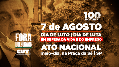 A CUT e demais centrais sindicais vão realizar, no dia 7 de agosto, um protesto contra o governo de Jair Bolsonaro (ex-PSL), especialmente contra a falta de uma coordenação nacional no combate a pandemia do novo coronavírus e as consequências desta balbúrdia para a economia e a manutenção e geração de emprego e renda.