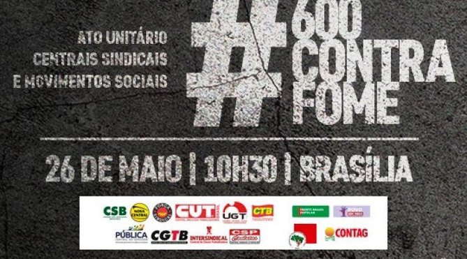 A CUT, Força Sindical, UGT, CTB, Nova Central, CSB, Intersindical, Pública, CSP-Conlutas, CGTB, CONTAG, MST e as frentes Brasil Popular e Povo Sem Medo organizam o ato nacional nesta quarta-feira (26), em Brasília, em defesa do auxílio emergencial de R$ 600, contra a fome e a carestia, por vacina no braço e comida no prato. O ato será transmitido, ao vivo via redes sociais e You Tube dos organizadores, além de TVs comunitárias. A tag que está sendo usada é #600ContraFome.