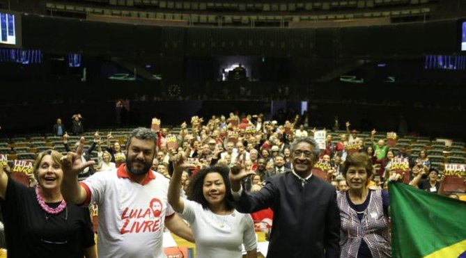 “Lula é preso político neste país. Está encarcerado sem crime e sem provas. Está encarcerado como muitos neste país durante a ditadura. Naquela época, se o golpe vestia farda, hoje também veste toga e paletó e se utilizam os mandatos parlamentares para rasgar 54 milhões de votos e tirar uma presidenta legítima do poder e extinguir direitos duramente conquistados”.