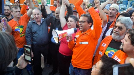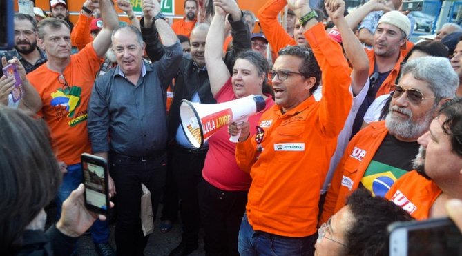 A Vigília Lula Livre funciona como um centro de resistência em frente à sede da Polícia Federal em Curitiba, desde o primeiro dia de prisão do ex-presidente Luiz Inácio Lula da Silva, no dia 7 de abril de 2018. Na tarde de hoje (3), a Vigília foi tingida de laranja, a cor dos coletes dos petroleiros. Neste dia de mobilização em defesa da soberania nacional, contra a sanha privatista do presidente Jair Bolsonaro (PSL), Lula recebeu visita do coordenador da Federação Única dos Petroleiros (FUP), José Maria Rangel, e do secretário-geral da CUT, Sérgio Nobre.