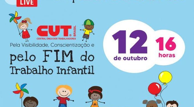 Na segunda, uma live “Trabalho Infantil, um problema de todos nós” será transmitida pela página do Facebook da CUT a partir das 16 horas e um tuitaço com a hashtag #TrabalhoInfantilEuCombato acontece a partir das 10 horas.