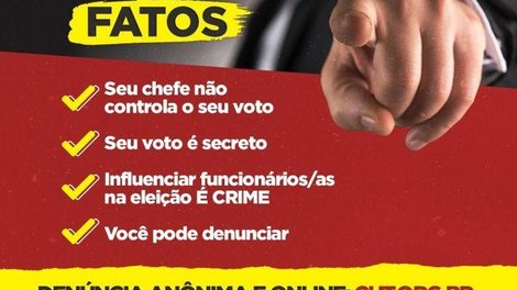 “Todas essas práticas criminosas de patrões devem ser combatidas, devem ser denunciadas e punidas, para que os trabalhadores possam ter garantida sua plena liberdade de voto, de exercer a democracia, escolhendo o candidato de acordo com seus princípios”, afirma Roni Barbosa, secretário de Comunicação da CUT, que reforça: “o portal da CUT é um instrumento do trabalhador e colocou à sua disposição uma página para que ele possa denunciar com tranquilidade e rapidez”.