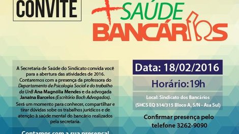 Brasília - Para dar inícios às atividades da Secretaria de Saúde em 2016, nesta quinta (17), o Sindicato irá promover um debate que terá como foco a saúde dos bancários.