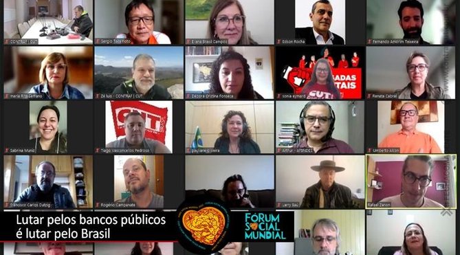 “Lutar contra as privatizações dos bancos públicos, é lutar por um Brasil melhor, com desenvolvimento econômico e inclusão social”, convocou Eliana Brasil, a coordenadora do Grupo de Trabalho em Defesa dos Bancos Públicos da Confederação Nacional dos Trabalhadores do Ramo Financeiro (Contraf-CUT), durante a terceira oficina da Confederação no Fórum Social Mundial 2022. “A oficina evidenciou o papel fundamental dos bancos públicos para a inclusão da população mais pobre do país na economia. Os bancos públicos são fundamentais para o desenvolvimento social e a geração de emprego e renda”, completou.