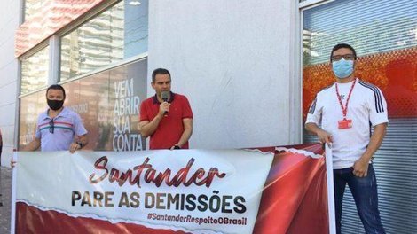 Na manhã de hoje (11), um dia após a demissão do bancário, dirigentes sindicais realizaram o segundo ato, do ano, em protesto contra as dispensas no Santander que ocorrem quase que diariamente em todo o Brasil, mesmo a instituição tendo se comprometido em não demitir nessa pandemia.