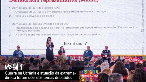 A professora Tathiana Chicarino concentrou sua participação em uma ampla discussão sobre o conceito de democracia, pela perspectiva histórica. Como ela expôs, o sistema democrático é “elemento permanente sobre como se vive em sociedade, histórica e geograficamente localizado no mundo urbano e industrializado, em que o trabalhador tem papel fundamental”.