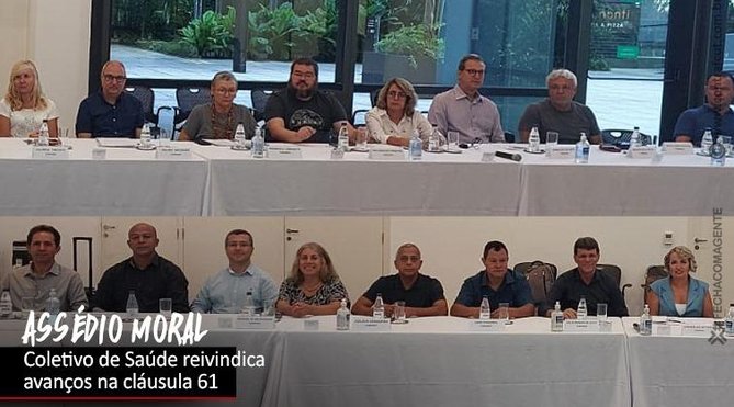 O Coletivo de Saúde apresentou uma proposta de ajustes à cláusula 61, que trata de assédio moral e discriminação nas relações de trabalho. Entre os pontos está a alteração do nome da cláusula para “Mecanismos de enfrentamento ao assédio e discriminação nas relações de trabalho”.