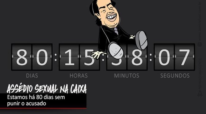 “A Caixa, que sob a batuta da Daniella (Marques, presidenta do banco) se diz preocupada com as mulheres brasileiras, não faz andar as investigações das denúncias de crime de assédio sexual praticado contra suas funcionárias”, lamentou a diretora executiva da Confederação Nacional dos Trabalhadores do Ramo Financeiro (Contraf-CUT), Eliana Brasil, que é funcionária do banco. “Se existem investigações contra seu ex-presidente, o banco deveria divulgar o andamento das mesmas. Agindo como age, mais uma vez a atual gestão mostra que realmente está utilizando o banco para fins político-eleitorais”, completou.