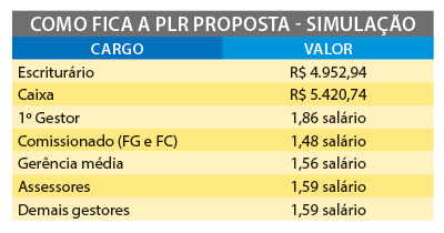 A proposta do BB mantém o modelo de PLR dos anos anteriores, com o reajuste de 10% apresentado pela Fenaban.
