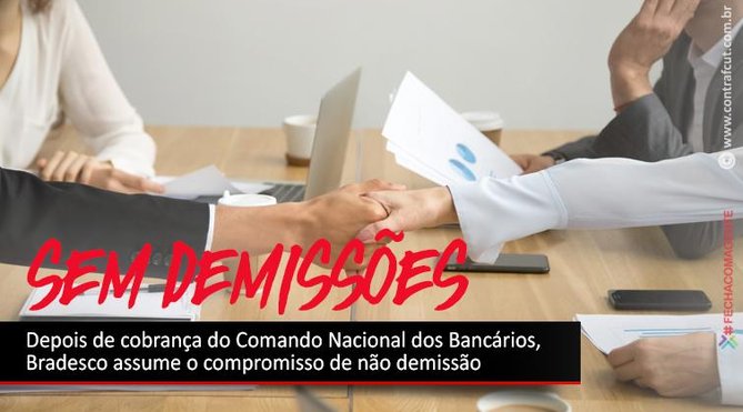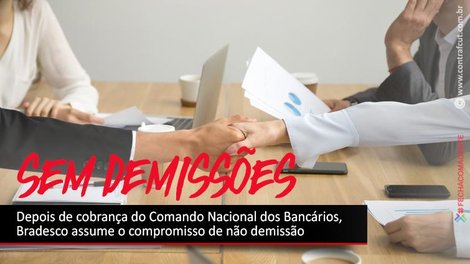 Logo depois de sua participação na live realizada no perfil do Instagram da Confederação Nacional dos Trabalhadores do Ramo Financeiro (Contraf-CUT), na noite desta quarta-feira (8), a presidenta da Confederação, Juvandia Moreira, recebeu uma ligação da direção do Bradesco para informar que o banco não irá demitir durante a pandemia do coronavírus (Covid-19).