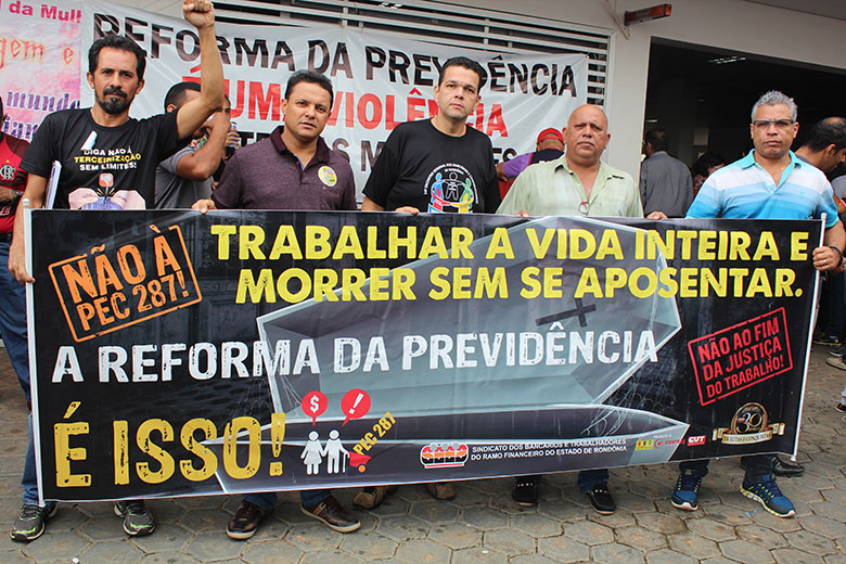 “Esperamos que os deputados federais e senadores, que hoje se disseram contra essa reforma, cumpram sua palavra, pois como representantes eleitos pelo povo, tem obrigação de se opor a qualquer projeto que ataque ou retire direitos dos trabalhadores. E é essa a vontade atual do povo, de que essa reforma absurda e desumana seja totalmente barrada. Mas também desejamos que os parlamentares da bancada federal do nosso Estado se posicionem contra outras iniciativas que representam ameaças ao trabalho e aos trabalhadores, a exemplo dos projetos da terceirização e da reforma trabalhista”, menciona José Pinheiro, presidente do SEEB-RO.