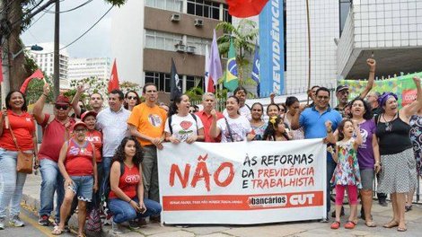 “Quem tem interesse em acabar com a previdência pública são os bancos, que querem lucrar ainda mais com os planos de previdência privada. Quem quer acabar com a aposentadoria são aqueles 150 empresários da Confederação Nacional das Indústrias que foram ontem à Brasília declarar apoio ao golpista Michel Temer e ajudar a comprar votos de parlamentares a favor da reforma através de lobby no Congresso. Por isso, a classe trabalhadora brasileira, a categoria bancária, deve estar unida e fortalecer a resistência em defesa da aposentadoria e da previdência pública. Estamos em estado de greve e, se a proposta de reforma for para votação, nós vamos parar o país em mais uma grande greve geral”, ressaltou Gilmar Santos.