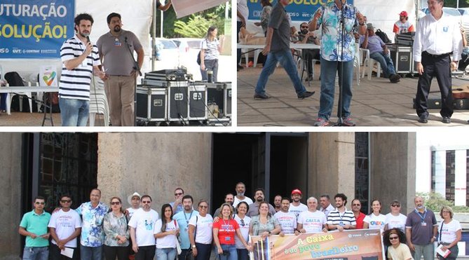 Brasília - Representantes sindicais dos empregados da Caixa de todo o país protestaram nesta quarta-feira (4) em frente ao edifício Matriz I, em Brasília, em defesa do banco 100% público e contra a reestruturação implementada pela empresa. O ato, que faz parte das atividades realizadas pela Comissão Executiva dos Empregados da Caixa (CEE/Caixa) nesta semana, também contou com o apoio do Sindicato dos Bancários de Brasília e da Fenae.