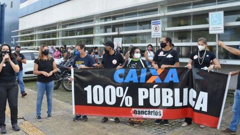 “A Caixa é o banco do povo, responsável por atender mais da metade da população brasileira com o auxílio emergencial, mas, infelizmente, temos que resistir à irresponsabilidade do Governo Federal e da direção do banco, que querem privatizar a Caixa em plena pandemia! Queremos mais contratações, a nossa PLR Social integral, queremos que a Caixa nos ouça e lute conosco pela vacinação da categoria bancária”, destaca a presidenta do Sindicato dos Bancários do Pará e empregada da Caixa, Tatiana Oliveira.