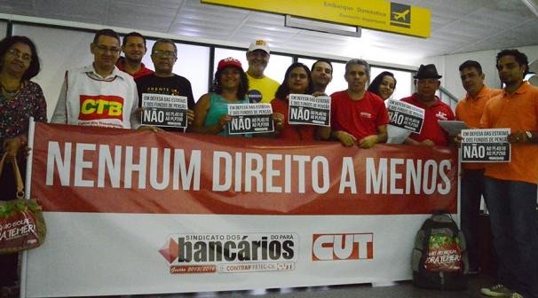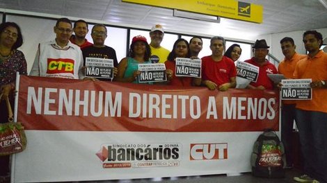 Belém PA - Todo dia é dia de luta para as trabalhadoras e trabalhadores brasileiros, seja no trabalho ou em casa; mas nessa terça-feira (14) a luta começou de madrugada e no Aeroporto Internacional de Belém com panfletagem e diálogo, mesmo que de forma rápida, com quase todos os deputados federais do Pará, que antes do embarque ouviram dos dirigentes do Sindicato dos Bancários os motivos pelos quais devem reprovar os Projetos de Lei sobre o Estatuto das Estatais (PL 4918) e os Fundos de Pensão (PLP 268), que podem ser votados hoje na Câmara dos Deputados.