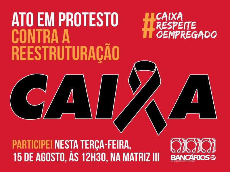O Sindicato de Brasília está organizando ato de protesto contra a reestruturação em frente ao edifício da Matriz III da Caixa, às 12h30.