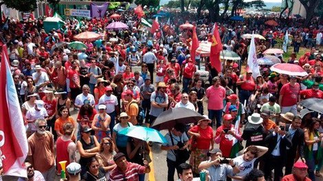 Muitos ônibus continuam chegando com mais trabalhadores para engrossar a manifestação, vindos dos municípios vizinhos ao Distrito Federal e também trazendo os rurais que se juntam ao ato.