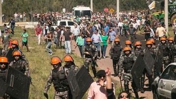 A conivência se repete agora no Paraná, onde parte da caravana não conseguiu chegar ao município de Francisco Beltrão porque um reduzido grupo de milicianos bloqueou a estrada, sob olhar passivo dos poucos policiais presentes.