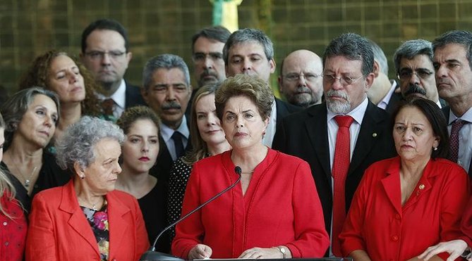 A presidenta eleita relembrou que este é o segundo golpe vivido por ela, sendo que o primeiro levou o país à ditadura civil militar (1964-1985). “O primeiro foi baseado na truculência das armas e me atingiu quando era uma jovem militante. Este segundo foi decretado por meio de uma farsa jurídica que me derruba da presidência (…) O projeto nacional progressista que represento está sendo interrompido por uma poderosa força reacionária com apoio de uma imprensa facciosa. Vão nos colocar nas mãos do imperialismo e do retrocesso social”, disse.