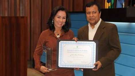 Campo Grande MS - A Secretária Geral do Sindicato dos Bancários de Campo Grande MS e Região - SEEB/CGMS, Neide Maria Rodrigues foi homenageada pela Assembléia Legislativa com troféu Wilson Fadul pelos serviços prestados à sociedade fruto de um trabalho árduo ao longo de sua carreira no Banco e no Sindicato. Vale lembrar que a companheira nunca polpou esforços para fazer a luta em defesa da classe trabalhadora. Parabéns!!!