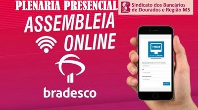 O Sindicato dos Bancários e Trabalhadores do Ramo Financeiro de Dourados e Região MS CONVOCA todos os empregados do Banco Bradesco S/A, sócios e não sócios, da base territorial deste Sindicato, para participarem de reunião assemblear específica remota a ser realizada no dia 14/11/2025 com votação das 08h às 17h, precedida de plenária no dia 13/11/2025 de forma presencial às 17 horas na sede do sindicato, na Rua Olinda Pires de Almeida, 2450, bairro Cidade Áurea em Dourados MS, para deliberação da seguinte PAUTA: