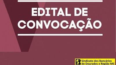 O Sindicato dos Bancários de Dourados e Região convoca os trabalhadores do ramo financeiro de sua base sindical, filiados à entidade, para Assembleia Geral Ordinária que se realizará no dia 30 de novembro de 2022, (quarta-feira) às 17:30h em primeira convocação e às 18h em segunda convocação, quando estará em pauta a Apreciação e Votação da Previsão Orçamentária do Sindicato para o ano de 2023.