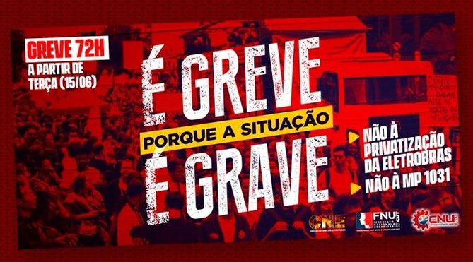 Os 12 mil trabalhadores e trabalhadoras do Sistema Eletrobras vão entrar em greve por 72 horas, a partir da zero hora desta terça-feira (15) até a zero hora do dia 17( quinta). O eixo principal da greve da categoria é contra a privatização da Eletrobras.