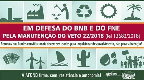 Em junho último, após uma intensa batalha em defesa dos fundos constitucionais por várias instituições, entre elas a AFBNB, a MPV 812/2017 foi transformada em Lei: a Lei 13.682/2018, que modifica a metodologia de cálculo dos encargos financeiros incidentes sobre as operações de crédito não rural com recursos do Fundo Constitucional de Financiamento do Norte (FNO), do Fundo Constitucional de Financiamento do Nordeste (FNE) e do Fundo Constitucional de Financiamento do Centro-Oeste (FCO) e altera a sistemática de remuneração dos respectivos bancos administradores.