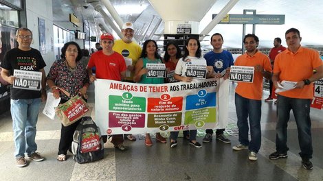 Os sindicatos filiados à Fetec-CUT/CN, assim como dirigentes sindicais bancários de várias categorias profissionais, fizeram panfletagem nos aeroportos em toda a região para pressionar os parlamentares que viajavam a Brasília.