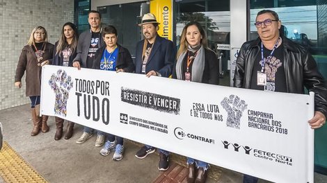 Campo Grande MS - Na tarde desta terça-feira, (21), será realizada a oitava rodada de negociação da Campanha Nacional dos Bancários. Os diretores do SEEBCG-MS estão percorrendo as agências de Campo Grande para conscientizar sobre a importância de unidade da categoria.
