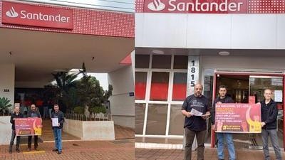 A mobilização aconteceu com muita força em todo o Brasil e, fechando a semana de protesto, os diretores do sindicato estiveram novamente nas duas agências do banco, dialogando com os funcionários e distribuindo o Boletim Sindical Santander para clientes, usuários e, também para os trabalhadores do banco.
