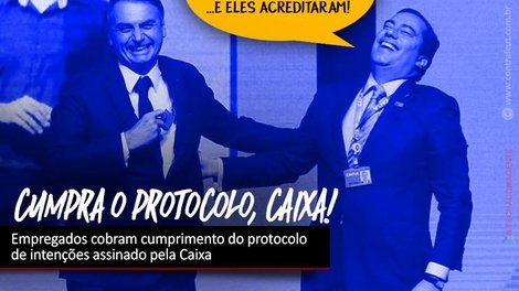 Na avaliação do presidente da Federação Nacional das Associações do Pessoal da Caixa Econômica Federal (Fenae), Sérgio Takemoto, o Protocolo de Intenções reúne reivindicações importantes das entidades e devem ser cumpridas pela Caixa. “Nós da Fenae e das entidades estamos cobrando a Caixa desde o início da pandemia e tivemos algumas conquistas. O Protocolo de Intenções é um instrumento importante para compor nossas reivindicações, mas é preciso que a Caixa cumpra os compromissos assumidos para proteger a saúde e a vida de todos os trabalhadores e da população que precisa da Caixa”, avaliou Takemoto.