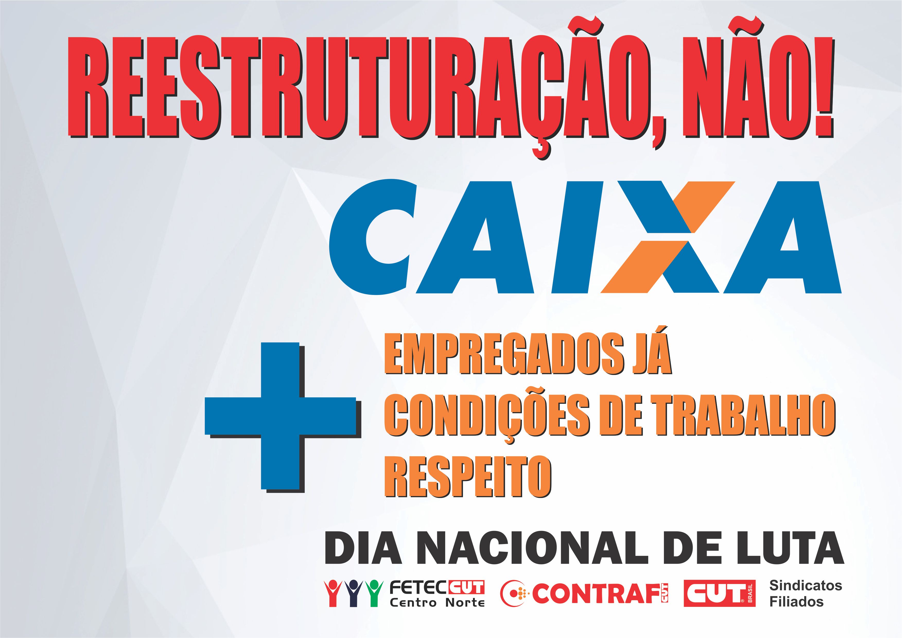 Os trabalhadores da Caixa Econômica Federal querem mais contratações e melhores condições de trabalho nas unidades, o inverso do que vem sendo feito pela diretoria do banco com o projeto de reestruturação, que está sendo tocado sem qualquer consulta aos empregados ou avaliação de impacto do que o fechamento de agências, por exemplo, representará para a sociedade brasileira.