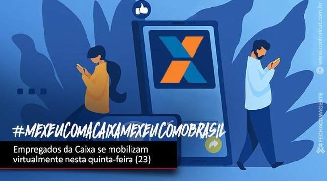Os empregados da Caixa Econômica Federal realizam nesta quinta-feira (23) um Dia Nacional de Luta em Defesa da Caixa. Na data, os trabalhadores farão um tuitaço, às 11h, com a hashtag #MexeucomACaixaMexeuComOBrasil. Além do Twitter, a hashtag deve ser utilizada no Facebook, Instagram e demais redes sociais.