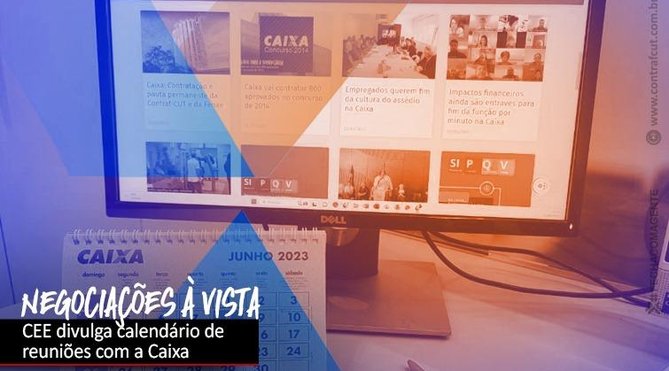 A Comissão Executiva dos Empregados (CEE) da Caixa Econômica Federal definiu um calendário de reuniões com o banco para negociar questões que afetam o dia a dia de trabalho nas unidades do banco e de respeito e valorização de empregadas e empregados. No dia 13 de junho, uma comitiva de representantes dos trabalhadores vai conhecer o funcionamento da Universidade Caixa, e nos dias 16, 20 e 23 haverá reuniões sobre condições de trabalho, promoção por mérito e específicas das funções de caixa, tesoureiro e avaliador de penhor, respectivamente.