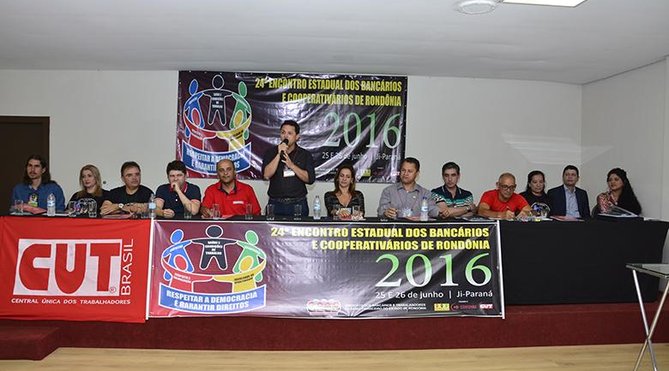 O 24º Encontro Estadual dos Bancários e Cooperativários de Rondônia, que este ano teve o tema “Respeitar a Democracia é Garantir Direitos” aconteceu no Máximus Hotel, em Ji-Paraná, reunindo mais de 130 representantes dos bancos públicos e privados e cooperativas de crédito do Estado.